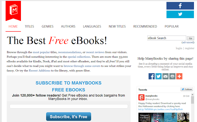 Manybooks is another fascinating website that lets users to download premium ebooks for free. However, this website uploads their ebook in kindle, epub and pdf format. You can search for ebook titles, Authors, Genre, Languages and other easy search options.
